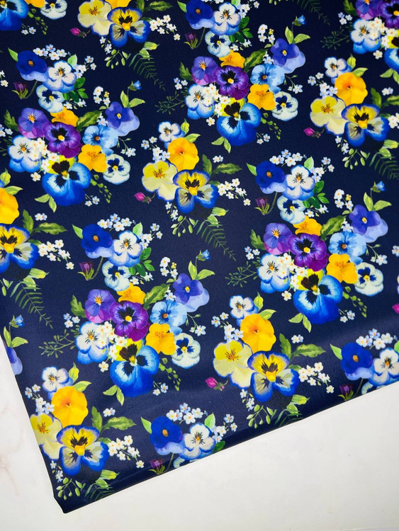 پارچه برزنت دیبا ممتاز طرح گل بنفشه زمینه سرمه ای تیره کاملا ضد اب وکیفیت بالا عرض۱۶۵مبلغ درج شده برای نیم متر میباشد وسفارش بیش از نیم متر یکسره برش زده میشود